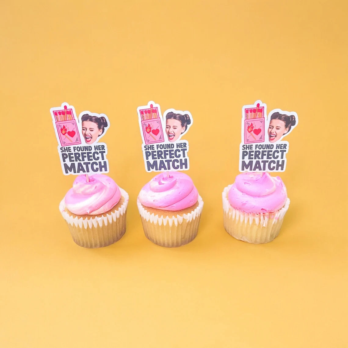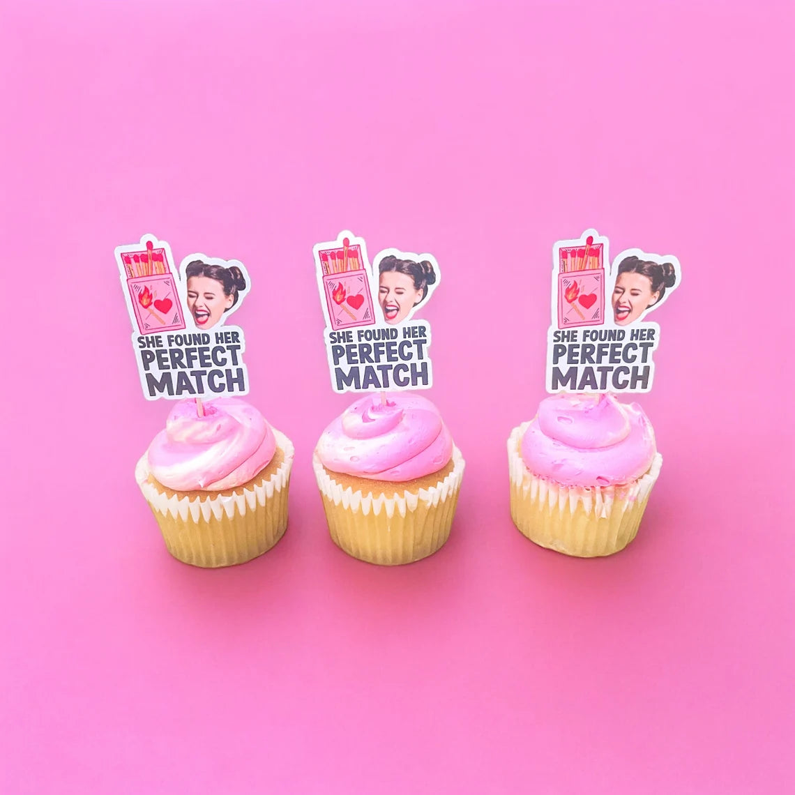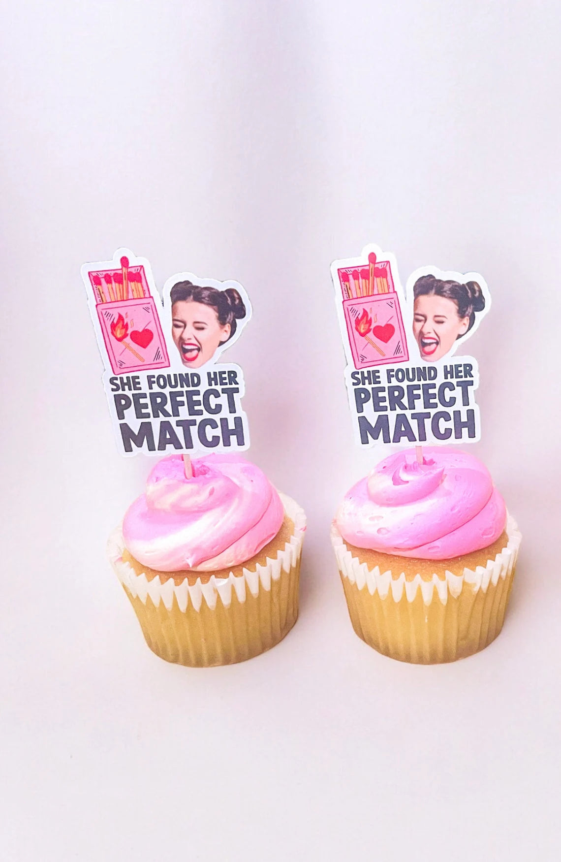24 Perfect Match Toppers | Match Made in Heaven | Bride Theme | Cupcake Toppers | Bach Party Decorations | Bachelorette Decor