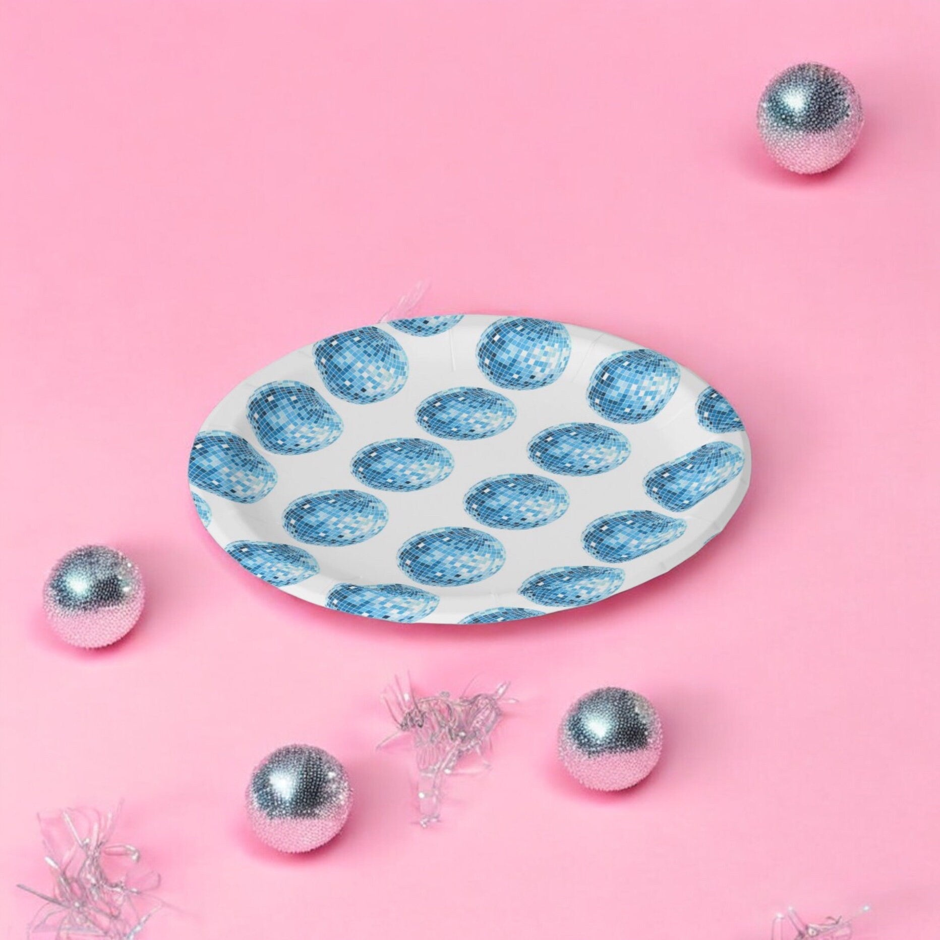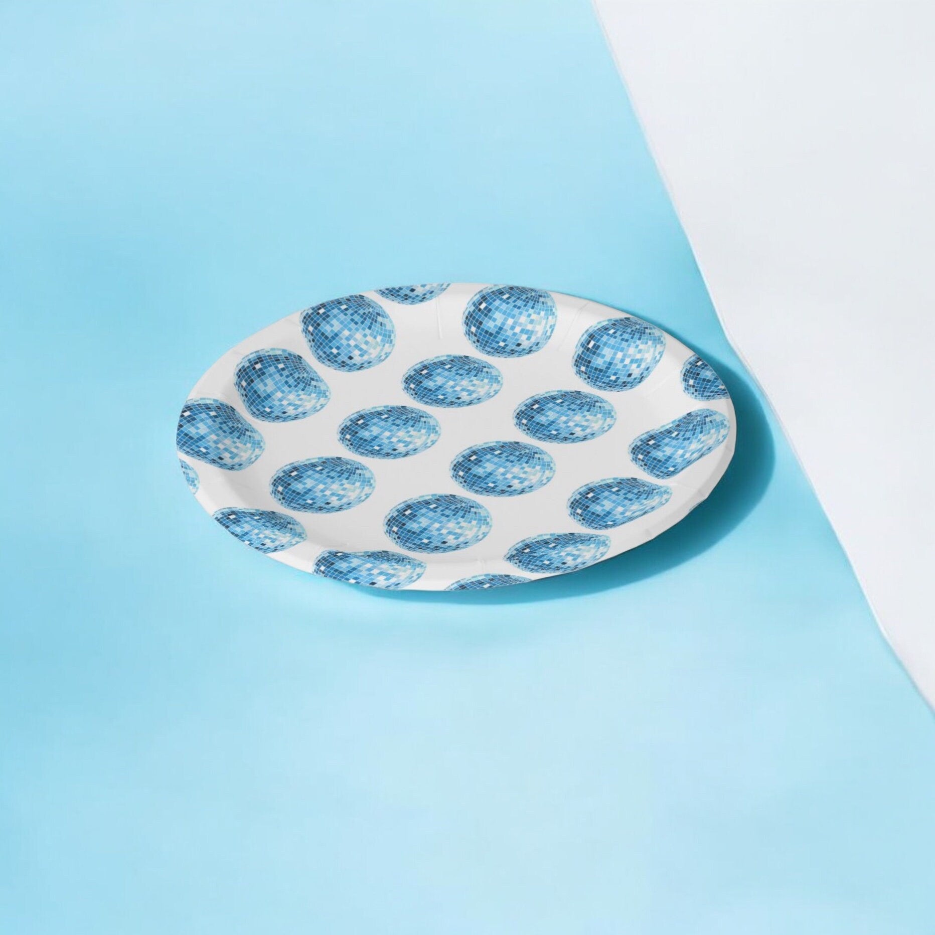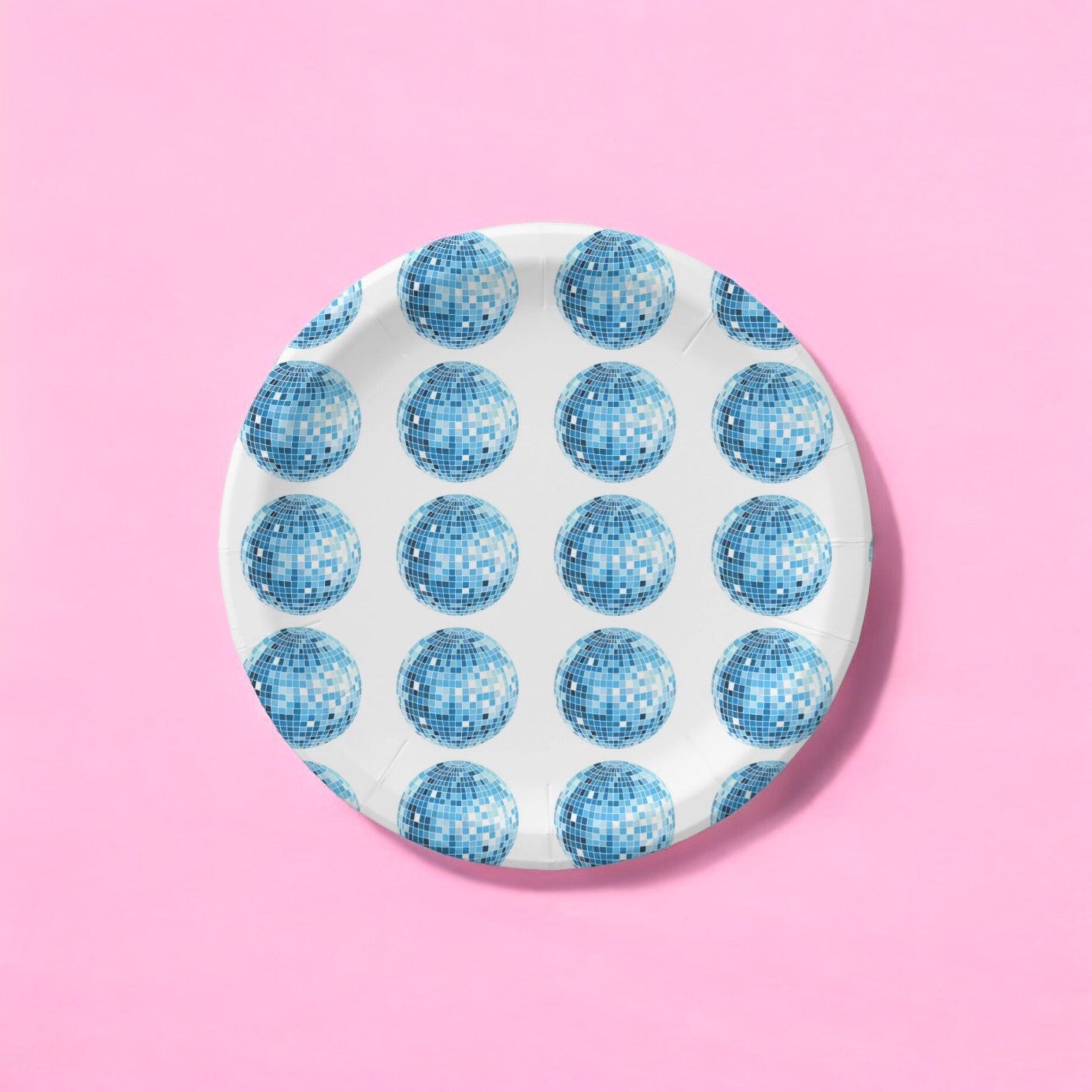 Throw an amazing disco party with paper plates to match your theme! We designed these to go along with our other “she found her honey honey” items in the shop. We wanted you to have more items to add to your party decor! And what is a party without dessert? So we created these dessert plates for your special occasion. We hand draw each design in the Neon Pink Shop studio. Each set of eight paper plates is printed on durable paper stock and decorated with blue disco balls. These plates are perfect for serving cake, appetizers, or salads. These will add a spark to your party that your guest will love!