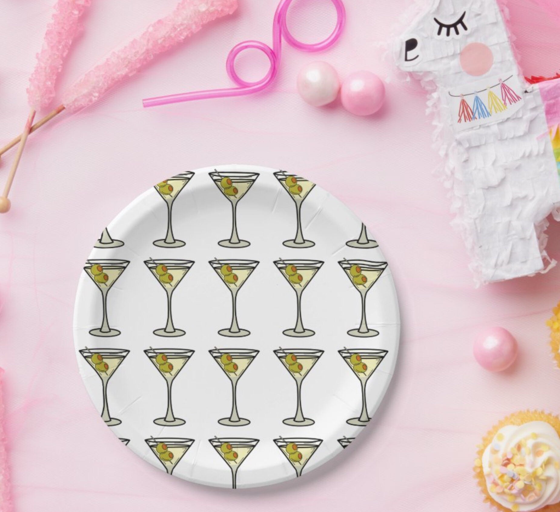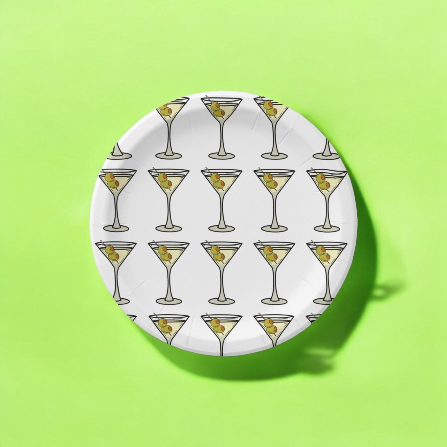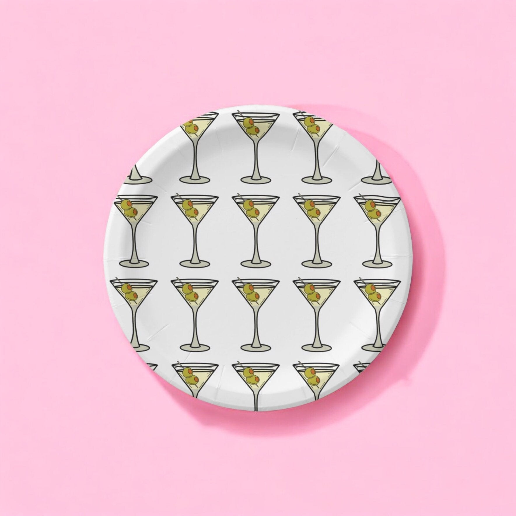 Throw an amazing martini party with paper plates to match your theme! We designed these to go along with our other martini items in the shop. We wanted you to have more items to add to your party decor! And what is a party without dessert? So we created these dessert plates for your special occasion. Each set of eight paper plates is printed on durable paper stock and decorated with martinis. We hand draw each of our designs in the Neon Pink Shop studio. These plates are perfect for serving cake, appetizers, or salads. These will add a spark to your party that your guest will love!